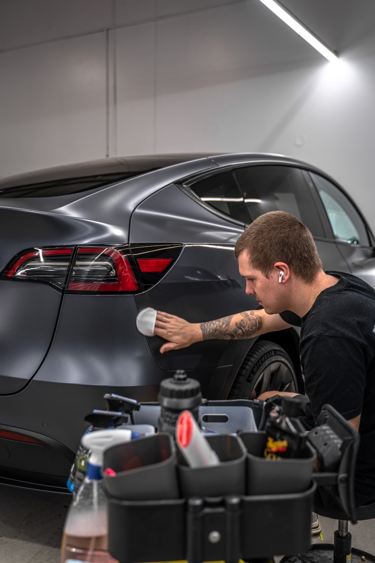 On top of the Xpel stealth paint protection film, we also added a layer of ceramic coating to provide hydrophobic properties to the PPF and ensure the owner spends less time cleaning the car and more time driving and enjoying it.