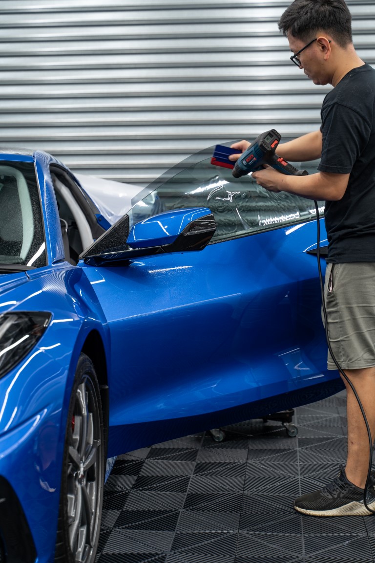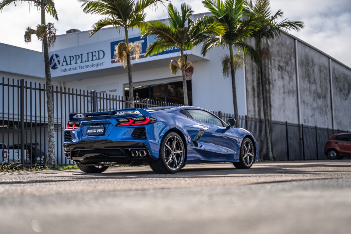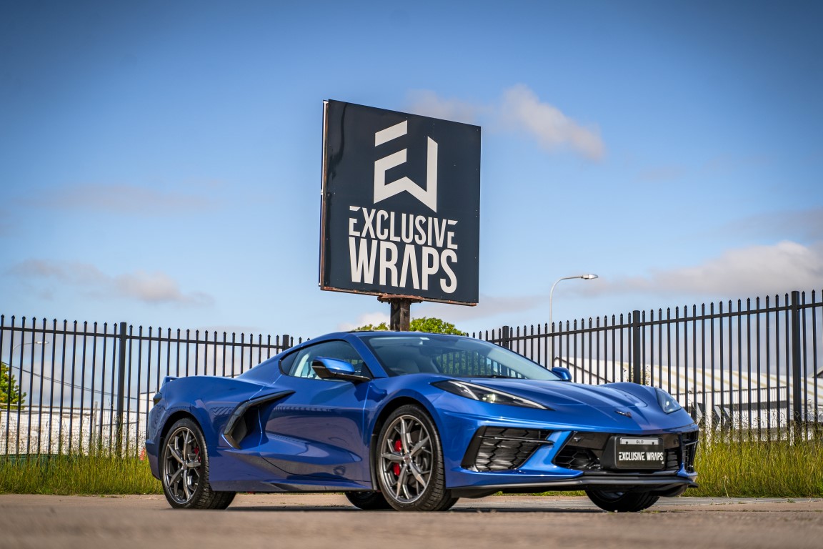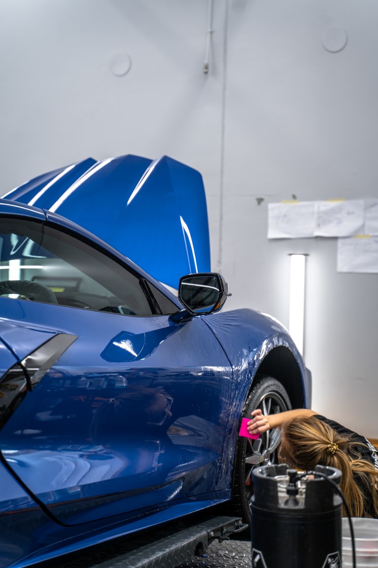 Take a look at the aggressive new C8 Corvette in for an Xpel PPF track pack.